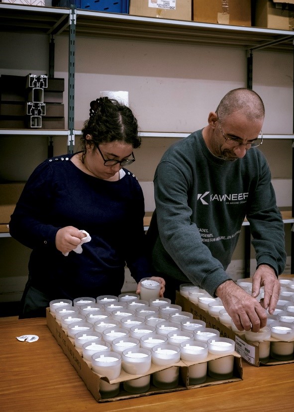 Cet atelier propose aux entreprises de sous-traiter leurs préparations de commande. Les Compagnons préparent des produits, les complètent et les emballent. Par exemple pour la parfumerie d’intérieur de luxe Estéban, il y a une partie étiquetage, mise en carton et protection des bougies, vaporisateurs…