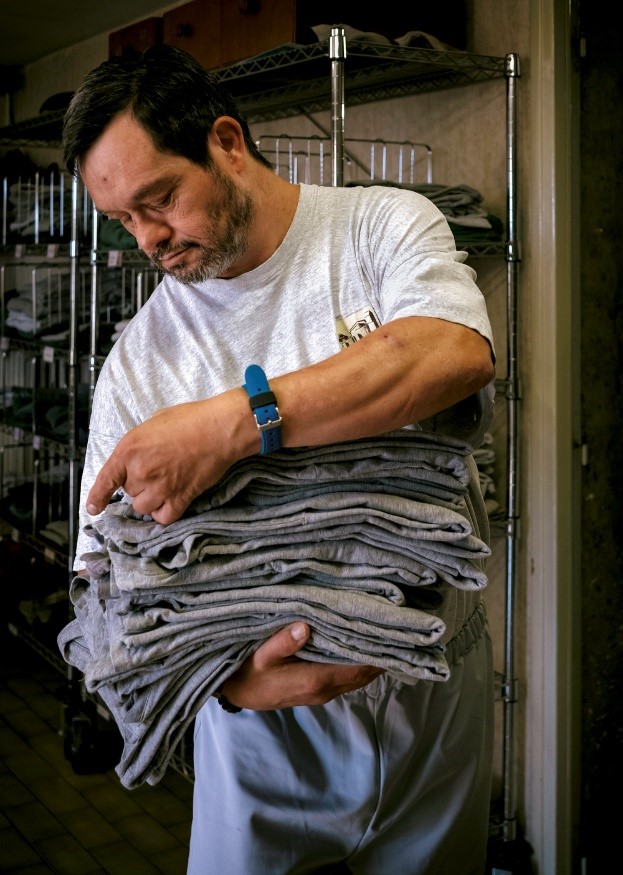 Cet atelier propose une prestation de lingerie pour tout le linge de travail des Compagnons, mais aussi pour le linge personnel si les Compagnons ne peuvent assumer cette tâche. La lingerie lave et repasse aussi le linge de maison des foyers.